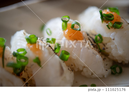 寒平目の炙り寿司〜紅葉おろしとネギポン酢〜