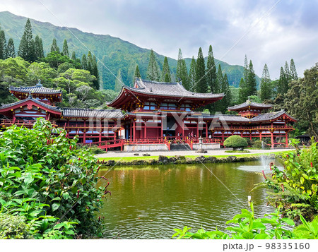 Beautiful Byodo-In Temple with the Koolau mountains in the Valley of the Temples on Oahu, Hawaii