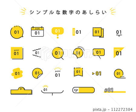 シンプルな数字の見出しデザイン _ ベクター 吹き出し あしらい ポップ 黄色