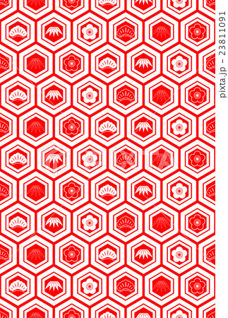 和柄と松竹梅の赤の和風背景_横_ベクターイラスト