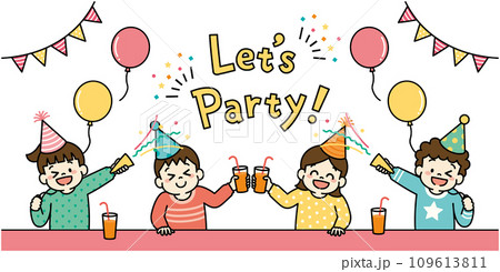 パーティーを楽しむ子どものイラスト 風船 ガーランド