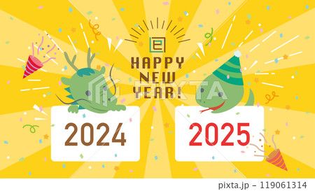 2024年タツから2025年ヘビへ ゆく年くる年の年賀素材(フルHD 16:9サイズ)