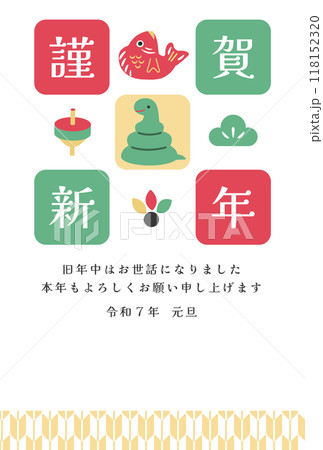 縁起物と巳年の年賀状テンプレート