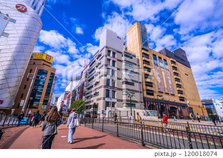 日本の横浜都市景観 11月。横浜駅前の繁華街。ドン.キホーテなどを望む(奥は横浜駅、ジョイナス方向)