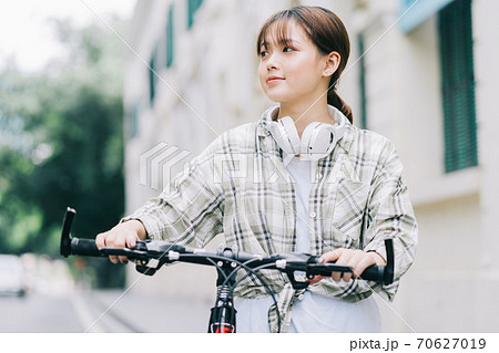 woman cycling on the street