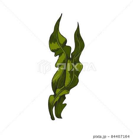 Kelp seaweed long leaves grass, hand drawn color vector illustration isolated.