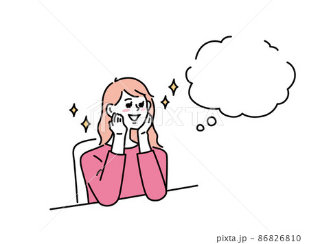 想像する女性のイラスト(嬉しい、憧れ、お得、妄想、幸せ、理想、ラッキー、計画)