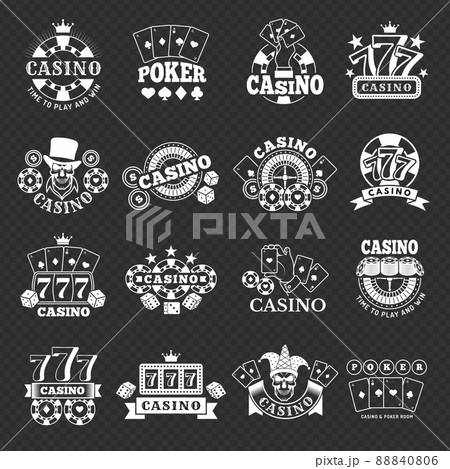 Gambling badges. Casino cards slot machines and dice gambling games stylized symbols recent vector monochrome illustrations set