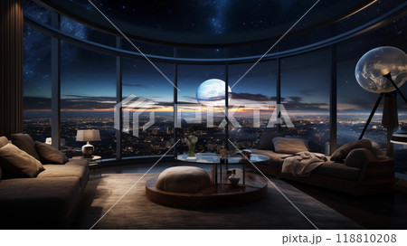 A Rustic Wooden Cabin Under a Full Moon and a Starry Sky