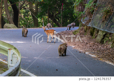 屋久島世界自然遺産の猿と鹿(8月)緑の回廊とヤクシカヤクザル