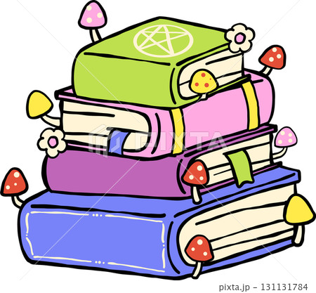 Halloween Bookish Reading Spooky Stack of Magical Books with Mushrooms Hand Drawn
