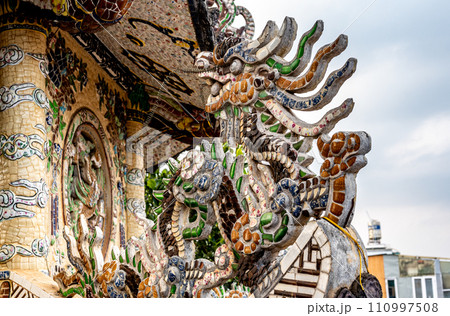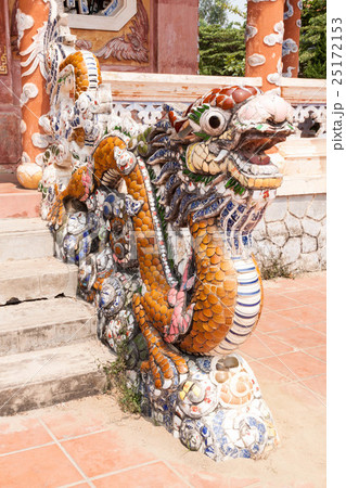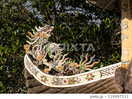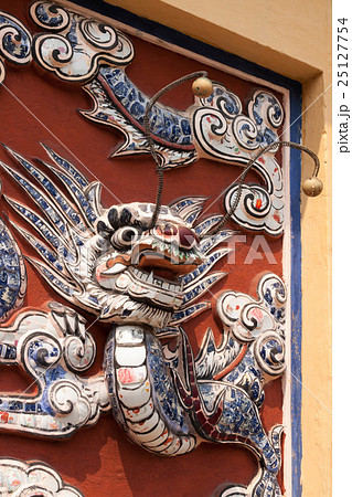ベトナムのフエにある阮朝王宮の彰徳門に飾られている龍の飾り