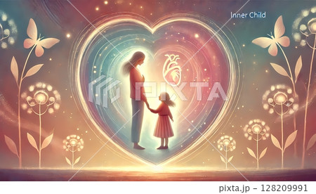インナーチャイルドとの和解を描いたイラスト 心理系コンテンツ用