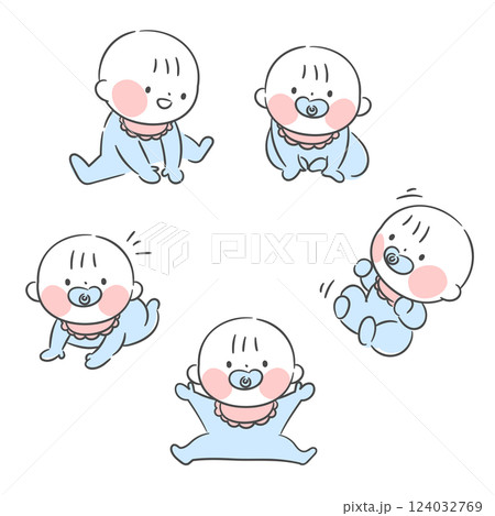 ハイハイをする赤ちゃん男の子のイラスト(乳幼児・成長)