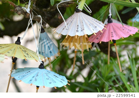山口県萩市 松陰神社内にある木にぶら下げられた扇子型のおみくじ
