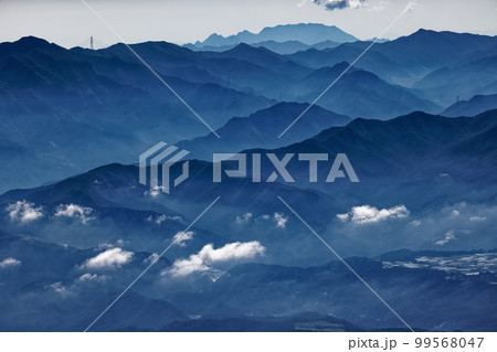 八ヶ岳連峰・硫黄岳から見る朝もやの山並みと両神山