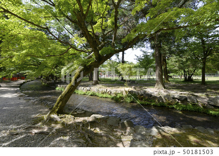 新緑の上賀茂神社 ならの小川と庁屋 京都市北区