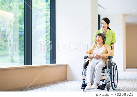 介護施設の高齢者とスタッフ 撮影協力「LINK FOREST」