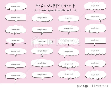 手描き風のゆるい吹き出しのベクターイラストセット フレーム ふきだし 飾り アイコン 手書き 枠