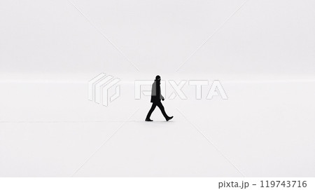 Minimalist Image of Person Walking Alone in White Space