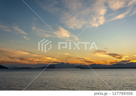 牡蠣筏が浮かぶ 夕暮れ時の瀬戸内海