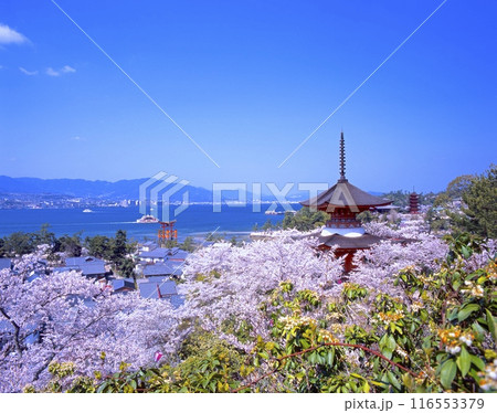 安芸の宮島・「世界文化遺産」厳島神社の桜景色/広島県廿日市市(はつかいちし)