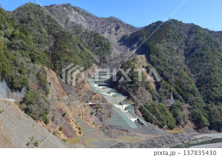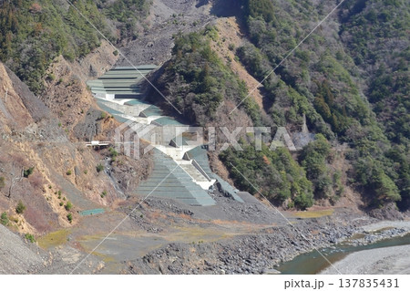 国道168号 長殿道路起点の小休場橋から眺める砂防堰堤