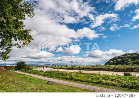 晩秋の背割堤から木津川御幸橋方面の景観 京都府八幡市