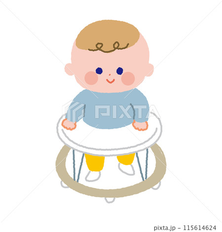赤ちゃん用歩行器を使っている赤ちゃんの線なしカラーイラスト