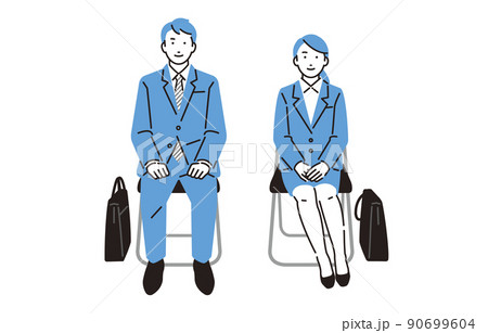 人物 面接で姿勢良く座る就職活動中の男女