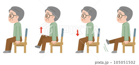股関節の運動を椅子に座ってするシニア男性のイラスト