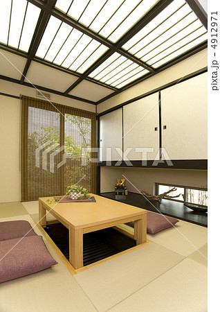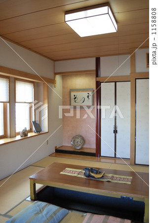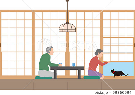 住宅。猫間障子のある和室とシニア夫婦.インテリア