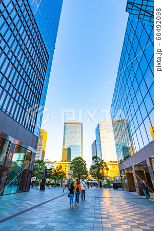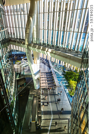 大阪駅中央北口アトリウム広場からの通路と斜陽