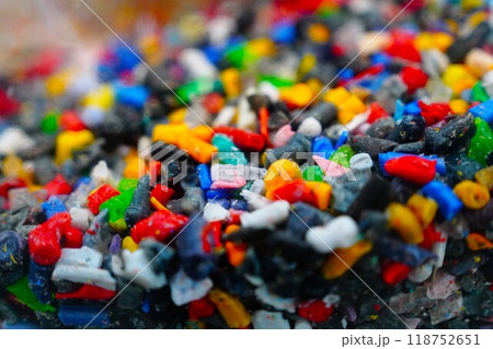細かく砕かれたプラスチックの破片