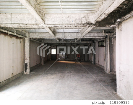 Dark corridor. Mystical interior of dark empty corridor, tunnel in an abandoned house. Dark mysterious corridor. The interior of an abandoned house, road to hell.