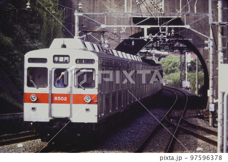 田園都市線・江田駅近くに有った赤田隧道、8500系半蔵門行き、1983年8月4日、コダクローム64
