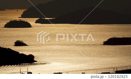 千光寺山公園から金色に輝く瀬戸内海の夕暮れ