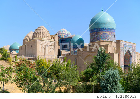 ウズベキスタンのサマルカンドにあるシャーヒズィンダ廟群の青くとても美しい風景