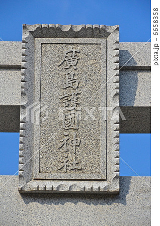 鳥居に架けられた「廣島護國神社」の額(広島護国神社・広島県広島市中区)
