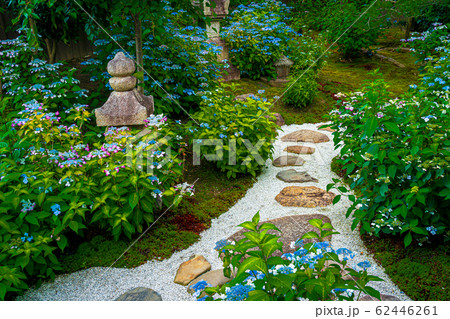 建仁寺塔頭 霊源院 庭園に咲く満開のガクアジサイ