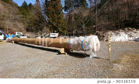 信州 諏訪大社の御柱(おんばしら) 日本三大奇祭のひとつ「御柱祭」で立てられる御神木(モミの大木)