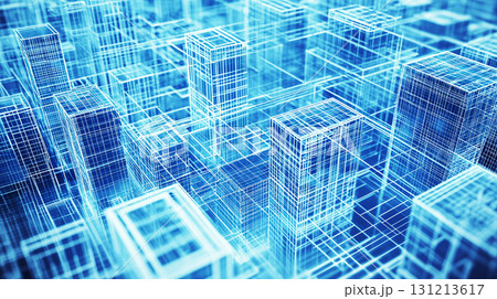 ワイヤーフレームで描いた近未来都市