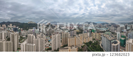 Feb 23 2022 Wide Cityscape View of Urban Skyline with Coastline