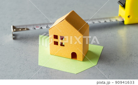 住宅の図面とメジャー 敷地面積35坪程度の一戸建て