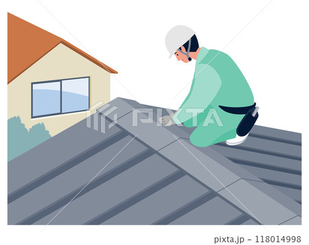 屋根修理工事をする作業員のベクターイラスト