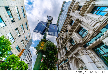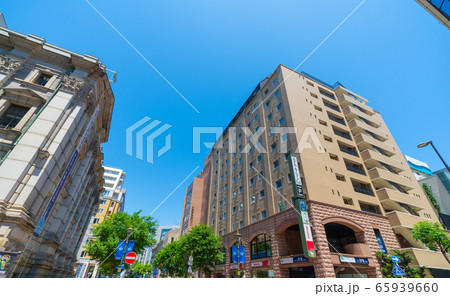 日本の横浜都市景観 馬車道に面したホテルルートイン横浜馬車道などを望む