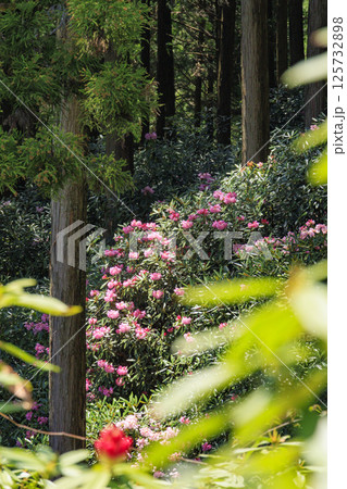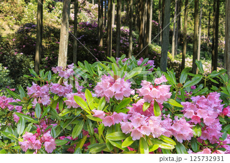 満開の弁財天石楠花の丘