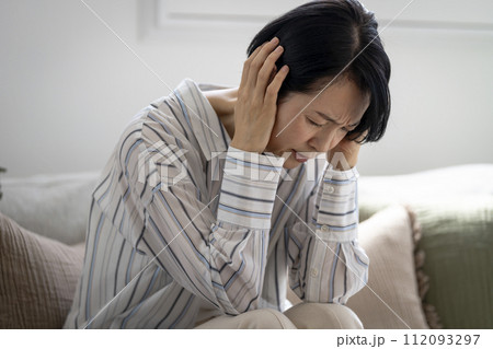 頭を抱えるアラフィフの女性