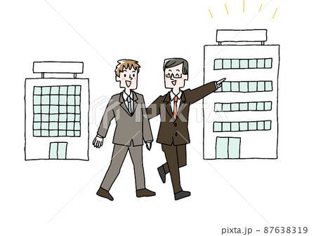 引き抜きで転職した男性 コミカルな手書きの人物 ベクター、線画にシンプルな色つけ