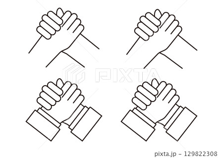 協力するように組み合う2人の人物の手のアイコンセット